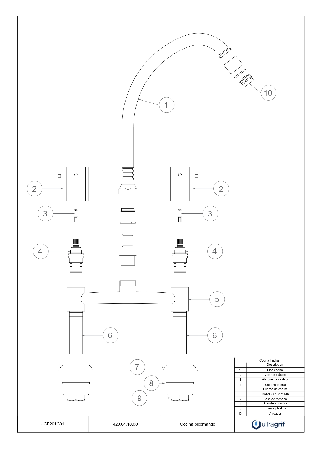 El Bicomando Fridha destaca por su diseño moderno disponible en Mat Black y Cromo. Con una altura de 19,5 cm y cierre cerámico, garantiza un uso eficiente y duradero. Ideal para cocinas que buscan un estilo sofisticado y resistente, con una presión mínima recomendada de 1 kg/cm².